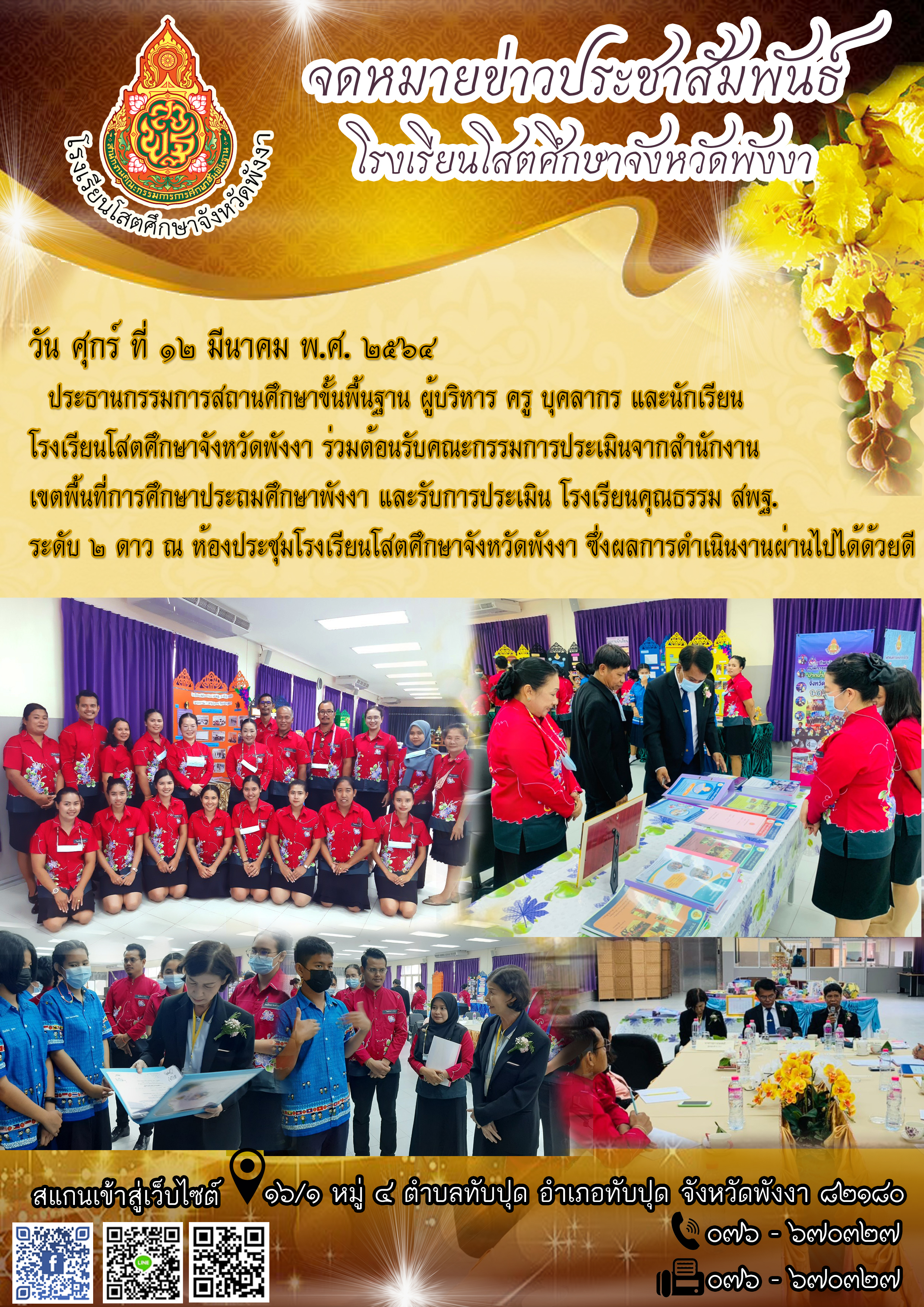 โรงเรียนโสตศึกษาจังหวัดพังงา รับการประเมิน โรงเรียนคุณธรรม สพฐ. ระดับ ๒ ดาว